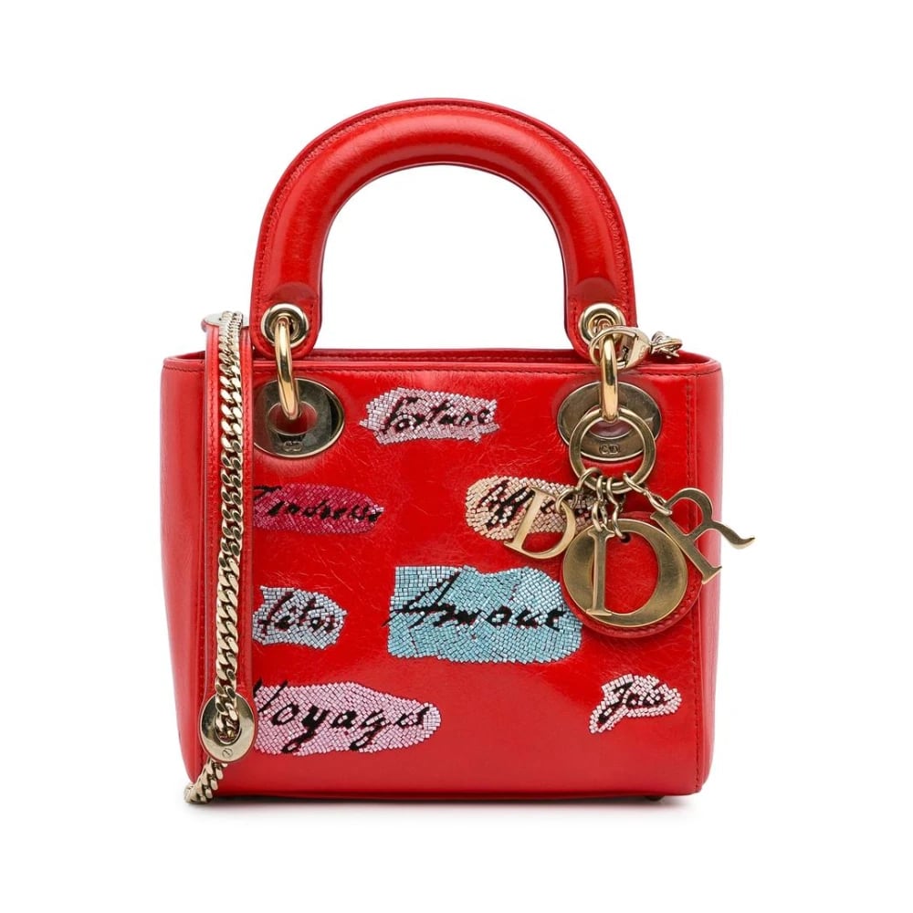 Dior Vintage, Vintage , Dam, ONE Size, Läder, Förägd Lady Dior Mini Väska Broderad