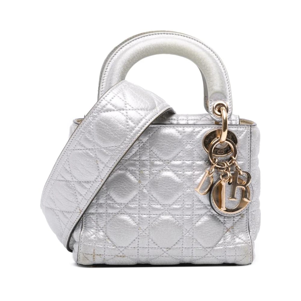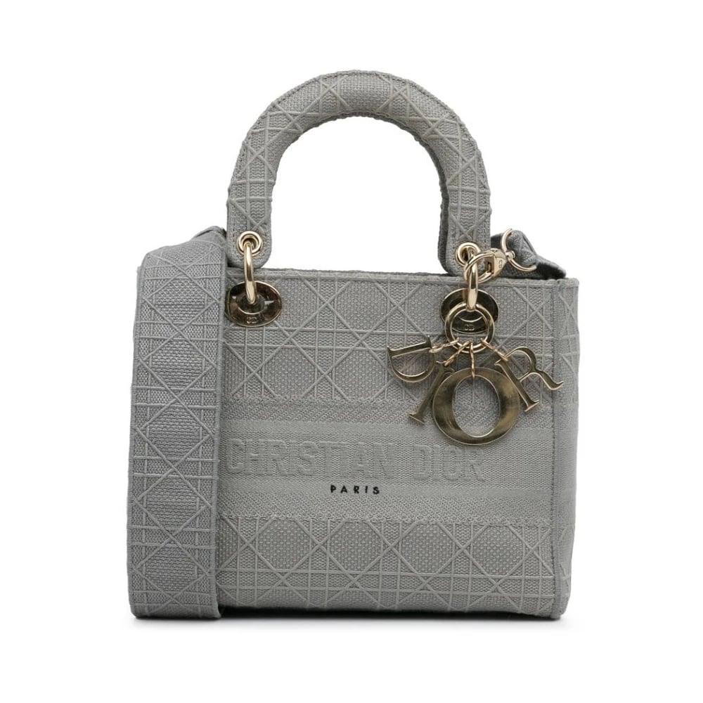 Dior Vintage, Vintage , Dam, ONE Size, Förhandsägd Dior Caro Mini Väska Grå Präglad Canvas