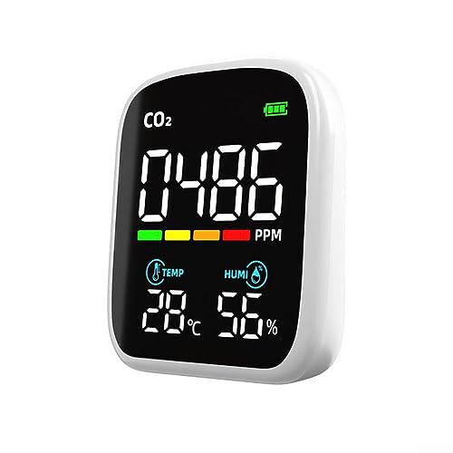 CO2 Monitor Carbon Monoxide, CO2 Detector Alarm Carbon Dioxide Detector Temperature Humidity LCD Display Indoor Air Quality Monitor with Battery Operated for Home and Kitchen