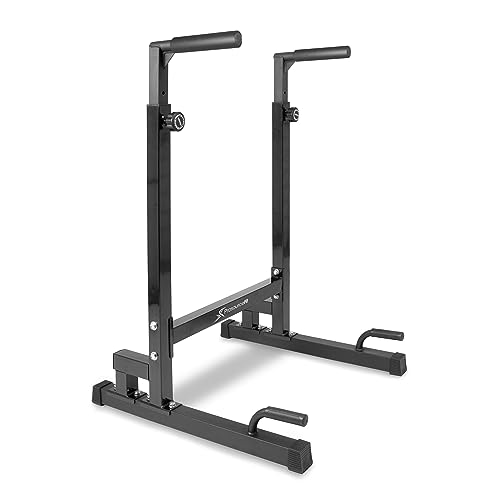 ProsourceFit dip stand station, justerbar dippbar för hem gym träningsutrustning, ultimat tung kroppsbar press med säkerhetskontakt för tricep dips, pull-ups, push-ups, L-sits, svart