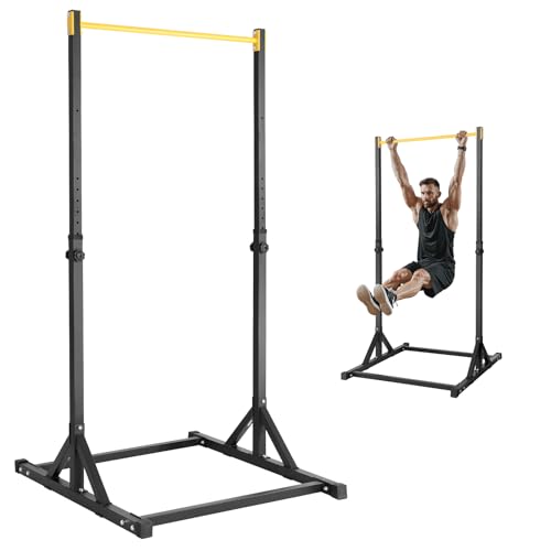VEVOR Power Tower Dip Station, 8-nivåers höjdjusterbart pull up-stång, multifunktion styrketräningsutrustning, hemmagym, fitness, dippbarstation, 150 kg viktkapacitet, svart och gul