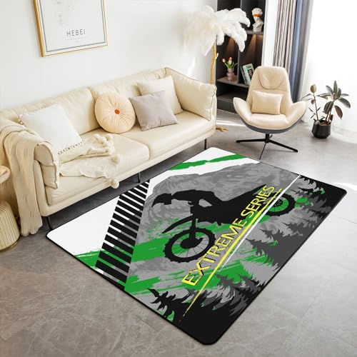 Motocross områdesmatta 150 x 200 cm extrem sport dekorativ matta dirt bike vardagsrumsmattor motorcykel grön inomhus golvmatta för pojkar flickor barn vuxna