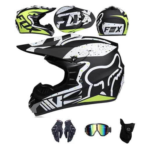 Gmuret Professionell motocrosshjälm för barn vuxna, motocross Dirt Bike Offroad motorcykelhjälm set med skyddsglasögon handskar ridmask