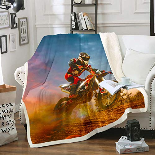 3D Dirt Bike fleecefilt motocross racer extremsport för barn pojkar tonåringar racing motorcykel plyschfilt motorcykel överkast enkel 127 x 152 cm