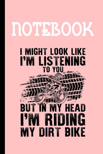 I Might Look Like I'm Listening But In My Head I'm Riding My Dirt Bike With Boy Racing A Bicycle On Pink Cover Gifts for Men Woman And Kids: Notebook