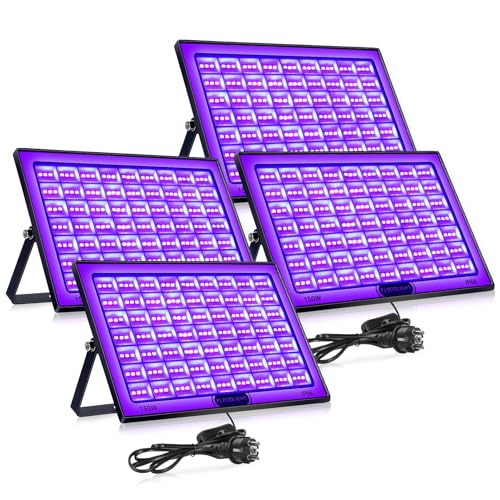 BOWEICORE 150 W svart ljusprojektor, 4 st LED-lampor, IP66 vattentäta, svarta UV-lampor, för fluorescerande fest, disco, DJ, scenbelysning, fest, halloweendekoration, kroppsmålning