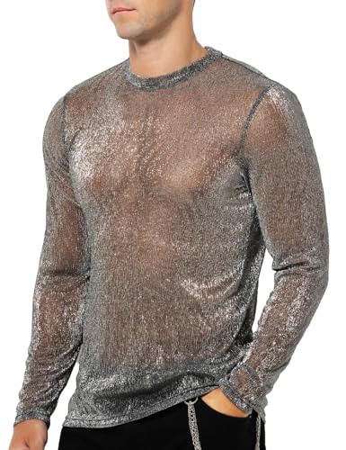 Casey Kevin Transparent Skjorta Herr Långärmad Glitter Mesh Mesh Paljetter Sexiga Kläder Disco Mesh Shirt Fishnet Genomskinlig T-shirt Se Genom Toppar Clubwear Party Night, D1-svart, M
