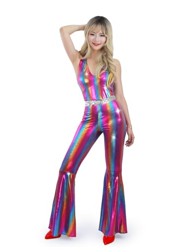 Muztagata Disco outfit 70-talet 80-talet bal gnistrande utsvängd overall festkostym halloween cosplay för vuxna kvinnor-X-Large