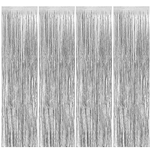Feibmir 4 stycken glittergardiner silver, glitter glittergardiner, serpdekoration för julfest nyårsafton 2025 disco party födelsedagsdekoration