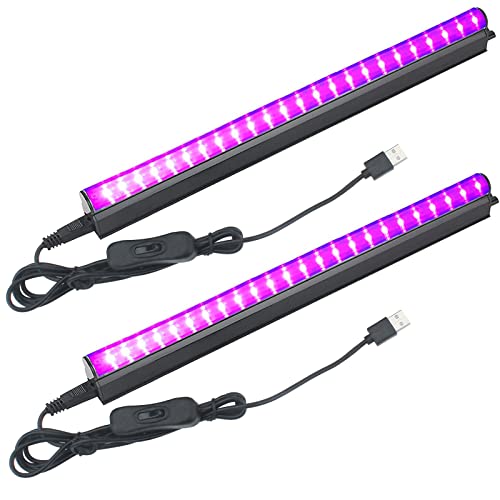 Eleganted Svart Ljusrör 2st 5W USB UV LED Svart Ljuslampa 395nm Svart Ljusbar Ljuseffekt Party Ljus Scenbelysning med Switch för Halloween Club Party Disco
