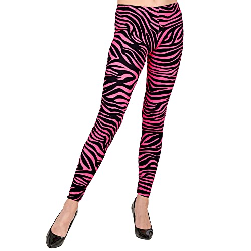 WIDMANN MILANO Party Fashion W leggings för barn 80-talet, tigertryck, 80-tals, djurtryck, disco feber, badknapp, randigt mönster, temafest, karneval