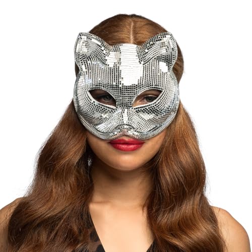 Boland – kattmask disco katt med elastiskt band, glittrande ansiktsmask för karneval, festival och temafest, djurdräkt katt