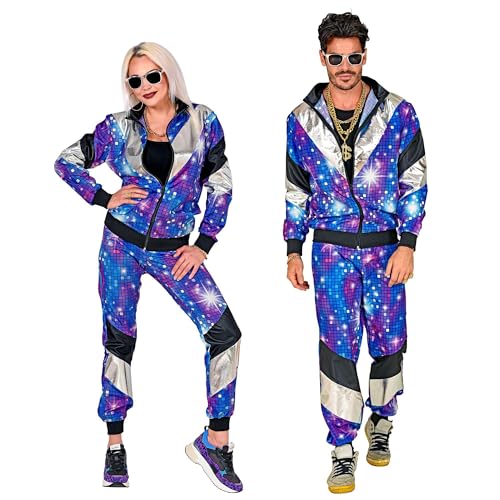 W WIDMANN MILANO Party Fashion – Kostym 80-talet träningsoverall disco, jacka och byxor, joggingdräkt, retrostil, badknappfest, karneval, temafest