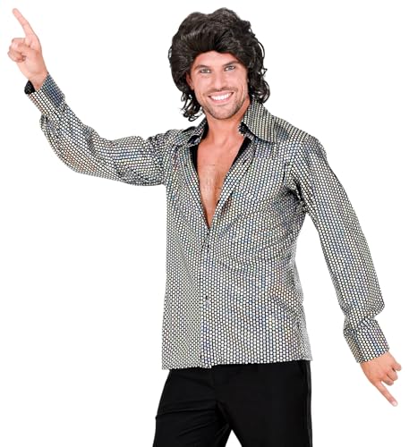 Boland - Skjorta disco, silver paljetter, skjorta för män, discoskjorta, karneval, halloween, temafest, 70-talet
