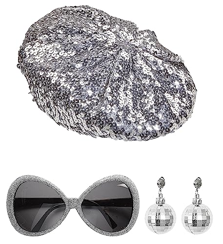 W WIDMANN MILANO Party Fashion 68599 – utklädnadsset disco babe, paljettmössa, glitterglasögon, örhängen med discokula, temafest, karneval