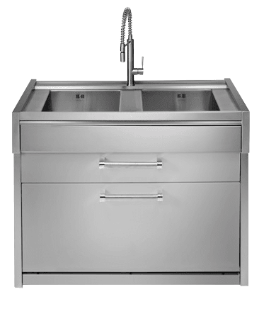 Utomhushandfat, 120 x 45 x 80 cm multifunktionellt tvättställ rostfritt stål, campingdiskbänk 3 underskåp 100 kg lastkapacitet, 360° vridbar vattenkran diskbänk dräneringssystem av stål