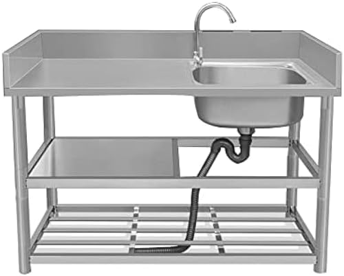Rostfritt Stål Handfat Kommersiell Restaurang Enkelskål Diskbänk Rörligt Kök Utomhus Fristående Diskho Med Kran Sil Rör För Bondgård Tvättstuga Bar Bakgård Restaurang,Varm Och Kall,120*50*80cm-Hög