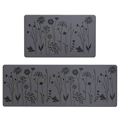 RLAVBL Uppsättning av 2 praktiska köksmattor – bekväma och halkfria PVC-köksmattor för komfort och säkerhet i kök, diskbänk och tvättstuga, tvättbar kökslöpare, 43 x 120 cm 43 x 75 cm (gråvit)