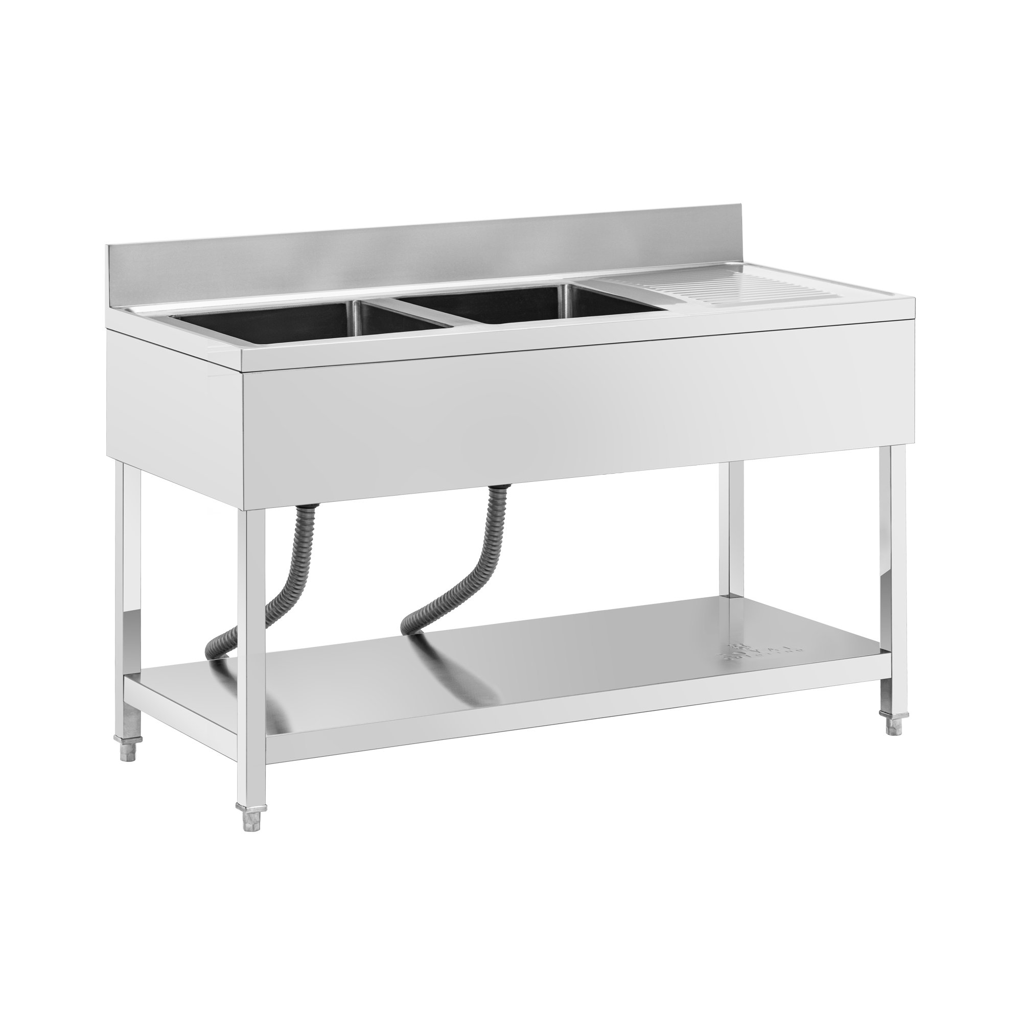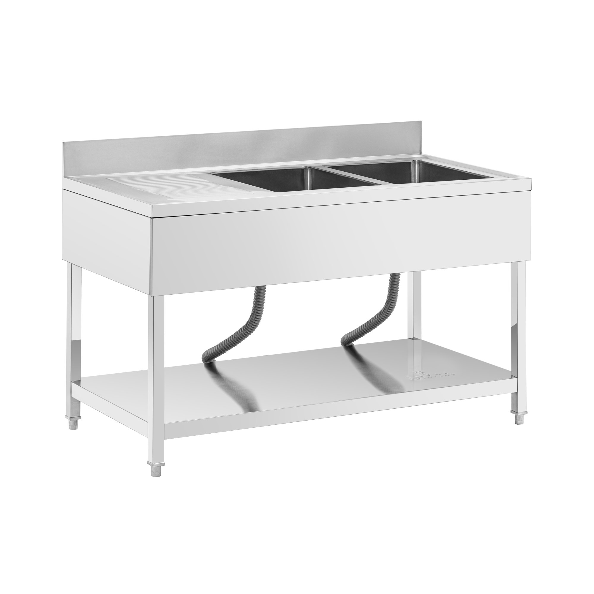 Royal Catering Andrahandssortering Diskbänk - 2 diskhoar Rostfritt stål 140 x 60 cm
