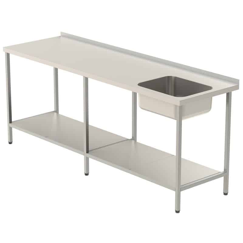 Diskbänk med Avfallshål Rostfritt stål 2000x700x900mm 1 ho till höger Stänkskydd | Adexa WHSTD2070R