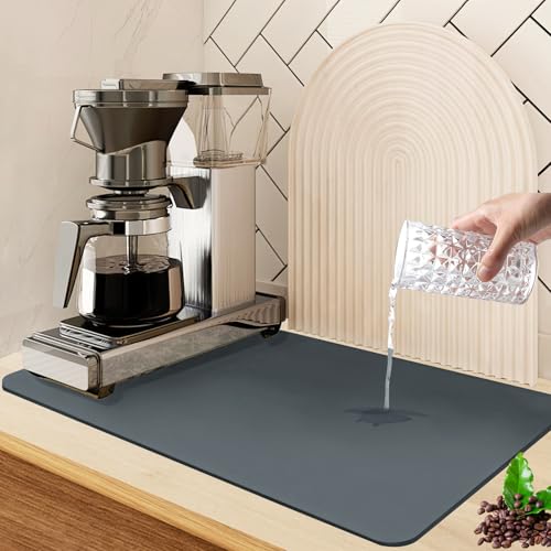 ZPQAODI Kaffebryggare, droppmatta, 60 x 40 cm droppmatta, porslin, kaffebryggarmatta, kaffemaskinsmatta, kaffematta non-slip för kaffebryggare, kök, diskbänk, mörk himmelsgrå
