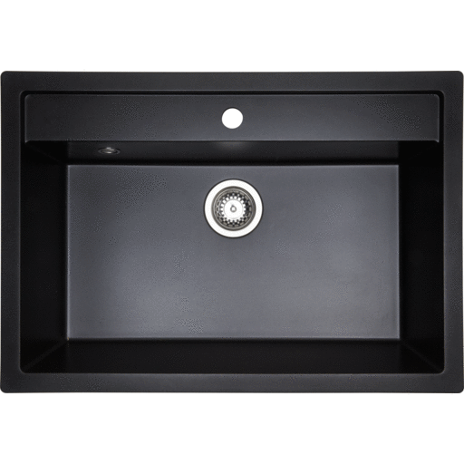 Manestein Diskbänk, Granitköksdiskbänk, Infälld Diskbänk, Avlopp, Enkelskål med Sifon, Fläckbeständig, 80% Kvartssand, 1 Skål, Oval, 60 x 47 cm, Grafit - Svart Späckad
