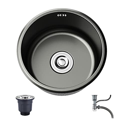 Svart Diskbänk, 11,8" Dubbelmonterad, Rund Diskbänk i Rostfritt Stål Enkel Skål Djup Diskbänk med Tillbehör Drop In Ovanför Bänken Liten Husbilsdiskbänk för Kök, Bar,(Nano svart diamant)