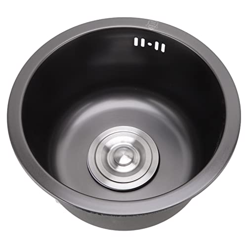 Mini Rund Diskbänk i Svart - Rostfritt Stål Handfat Enkel Skål med Avloppstillbehör för Hemmet (Nano Svart Diamant)