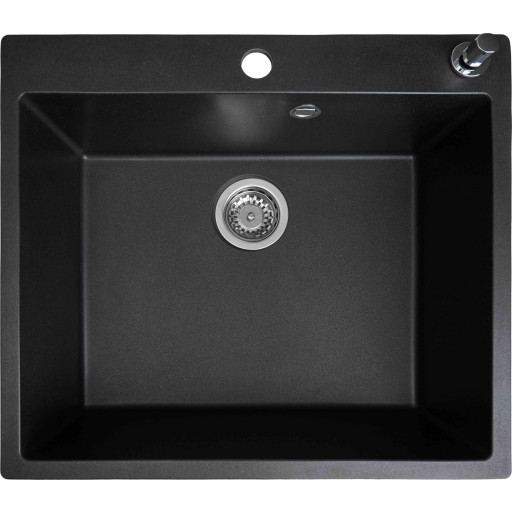 Diskbänk svart, med tvåldispenser – 50 x 45 cm, diskbänk, inbyggd diskbänk, diskbänk, köksarmatur, diskbänk med dränering, PVD nanotextur