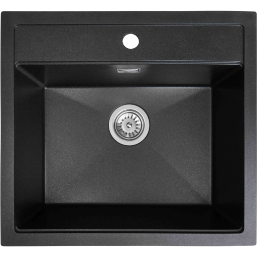 VBChome Diskbänk svart med kran 50 x 47 cm granit, enkel diskho, infälld diskbänk, diskbänk, prickig granitliknande + sifondiskbänk + diskbänkskran, engreppsblandare