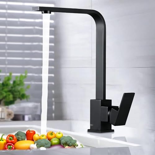 XWIHTR 360° roterande varm och kall köksblandare i rostfritt stål, enkelspaksblandare för diskbänk, droppfri med tyst diskbänksblandare (svart)
