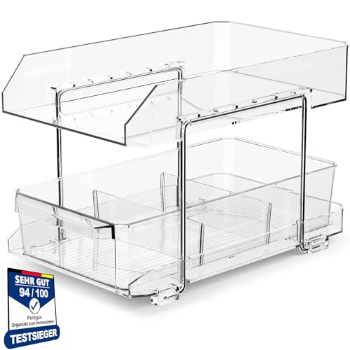 Polegas Skåp Organizer kök köksskåp kylskåp underskåp arrangör, multifunktionell akryl med skjutlåda kökshylla, under diskbänksförvaring kosmetika, kryddhylla utdragbar