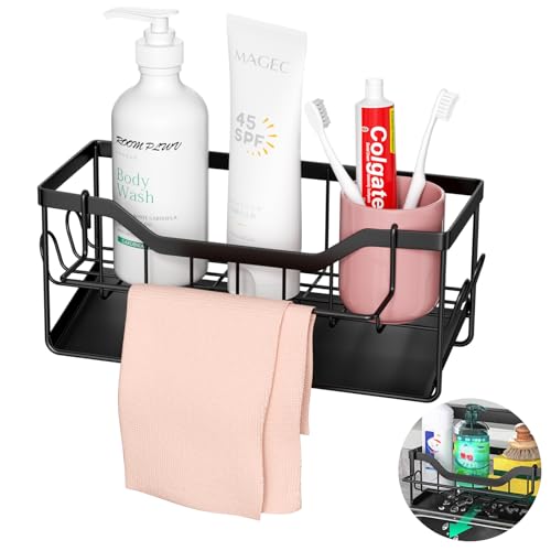 BANISIGA Diskbänksorganisatör, hängande eller landning köksförvaring, svamphållare, diskmedelshållare, köksorganisering diskbänk, diskbänksförvaring, svart