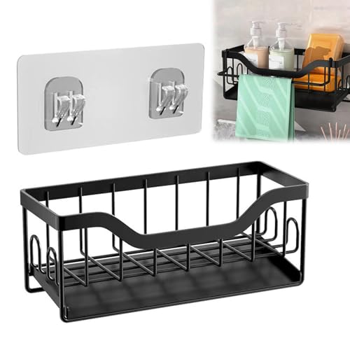 Diskbänksorganisatör, köksvamphållare diskbänk med självdränerande avloppsbricka, med avtagbar handdukshållare och förvaringslåda diskborste, arrangör för kök och badrum (svart)
