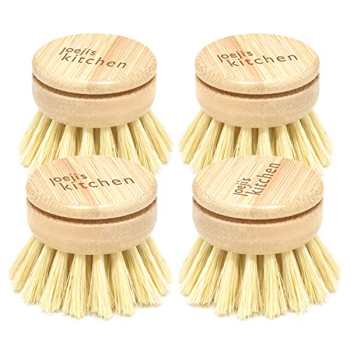 Joeji's Kitchen Ersättningshuvuden För Diskborstar Set Med 4 Eco-Diskborste I Trä Med Bambuhandtag Och Sisalfiberborstar - Repfria Diskborstar För Att Diska Tallrikar Spisar Badkar