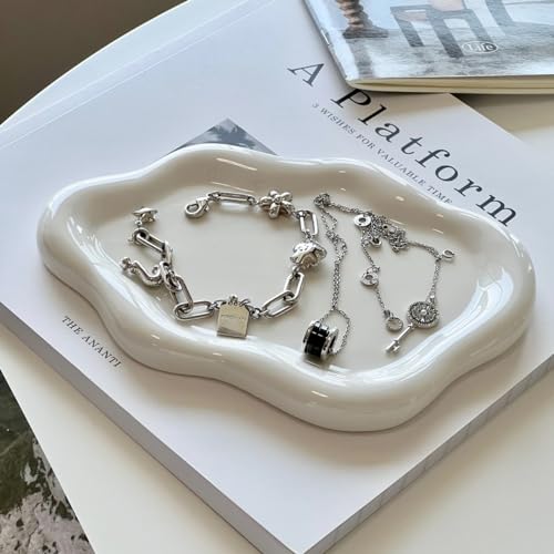 CESTATIVO Smyckestallrik, smyckesbricka, prydnadsbricka, ring diskbricka, liten nyckelbricka, keramisk bricka, estetisk sminkdekor, mors dag, jul, Thanksgiving, födelsedagspresent för kvinnor (vit)