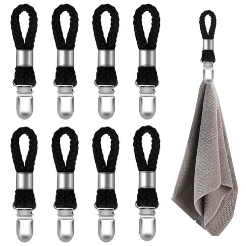 Handduksklämmor, 8 stycken hängare för handdukar handduksklämmor för upphängning, handdukshållare clips handduk hängare svart handdukshängare för handdukar diskhandduk