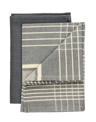 diskhandduk mod. Tito Uppsättning av 2 absorberande snabbtorkande diskhanddukar grå bomull i våffelutseende och ränder kökshanddukar 45 x 65 cm