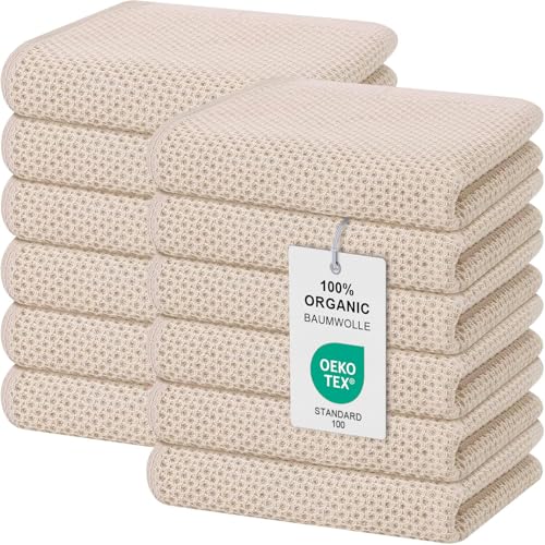 Moosfor Diskhanddukar 100 % bomull, set om 12 32 x 72 cm, mjuka diskhanddukar, kökshanddukar, absorberande kökshanddukar, tjock premium diskhandduk, disktrasa, rengöringslappar, beige