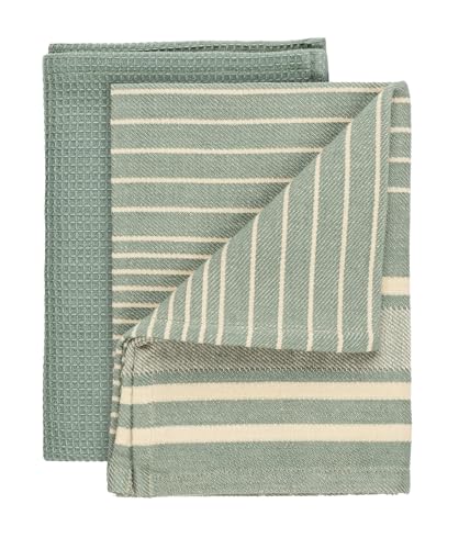 diskhandduk mod. Tito absorberande kökshandduk set av 100% bomull i våffelutseende och randig design för kök 45,0 x 65,0 cm grön