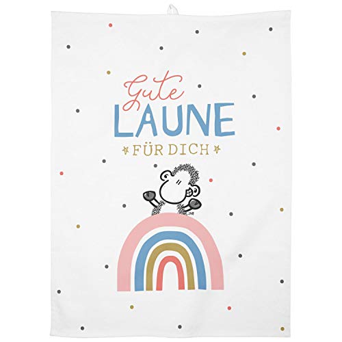 Sheepworld 47091 Bra humör, bomull, 60 cm x 45 cm, vit diskhandduk