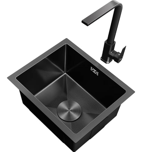 UESUENYENS Svart diskho rostfritt stål kök | diskbänk underskåp, inbyggd diskbänk kökshandfat | reptålig och frostskyddsbeläggning | diskbänk (45 x 40 x 20) cm