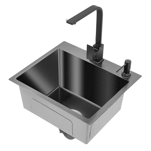 Sinks Kök Liten Diskho Svart 3MM Tjockt Rostfritt Stål Inbyggd Med Kran Och Tillbehör (Color: Black 25x40cm)