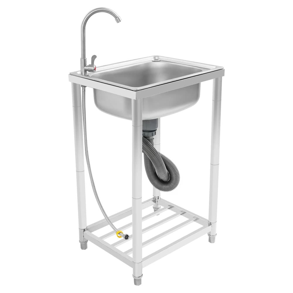 Rostfritt Stål Handfat Kommersiell Restaurang Enkelskål Diskbänk Rörligt Kök Utomhus Fristående Diskho Med Kran Sil Rör För Bondgård Tvättstuga Bar Bakgård Restaurang,Varm Och Kall,120*50*80cm-Hög
