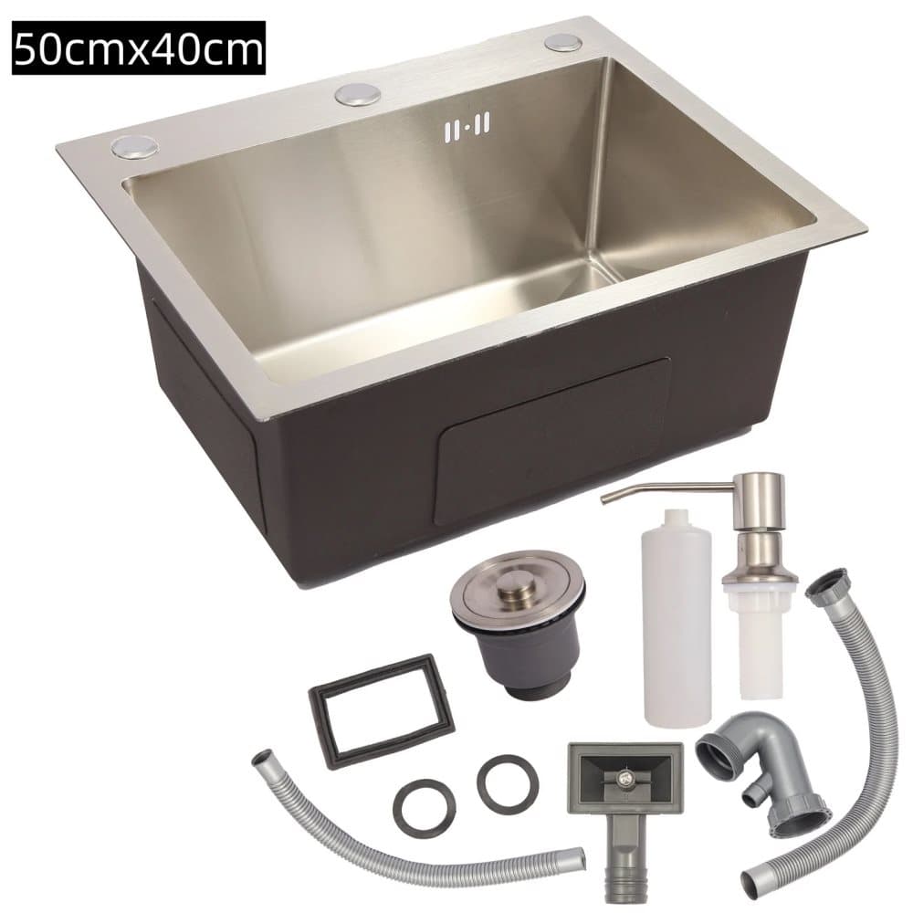 Rostfritt stål diskho kök 1 bricka i rostfritt stål med avloppsbeslag, infälld diskbänk för diskbänk i rostfritt stål för bottenmöbler (90 x 50 x 15 cm)