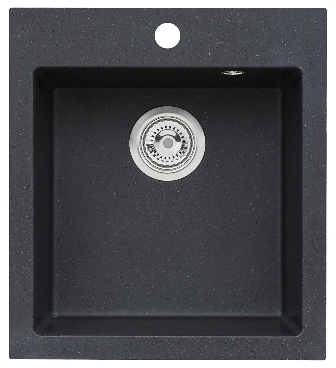 VBChome Diskbänk svart med kran 50 x 47 cm granit, enkel diskho, infälld diskbänk, diskbänk, prickig granitliknande + sifondiskbänk + diskbänkskran, engreppsblandare