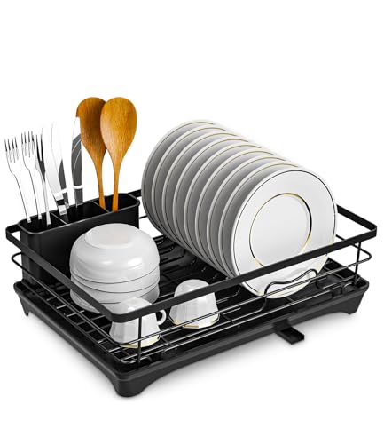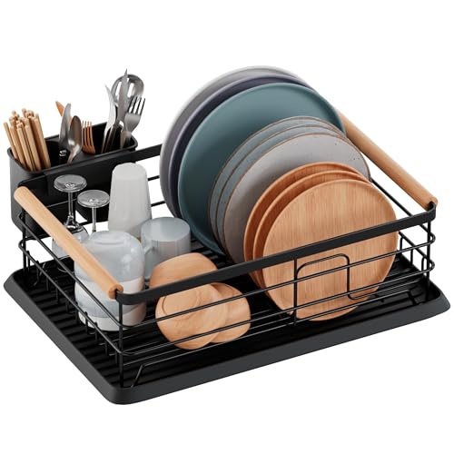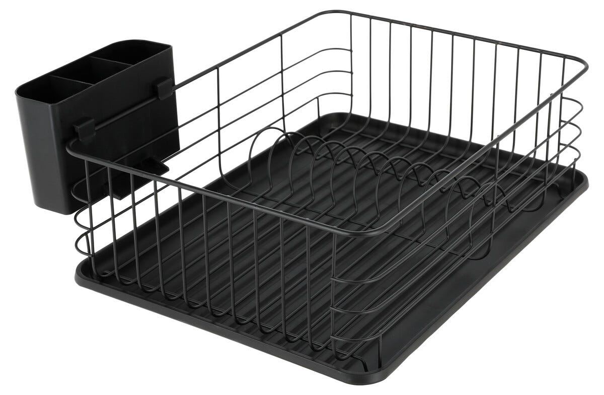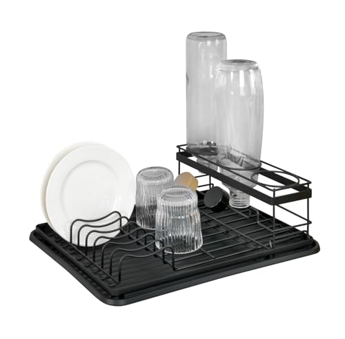 SOBEAU Droppställ porslin, diskställ, diskställ för diskho torrställ, disktorkställ, med avtagbar bricka, 42 x 30 x 13,5 cm, svart
