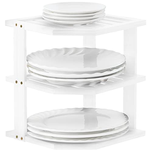 YOUDENOVA Bambu servis organisatör, 25 x 25 x 25 cm, 3 nivåer hörnskåp bricka för kökshylla, avlopp, diskställ, vit