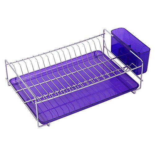 Sauvic Platt 18/8 rostfritt stål diskställ med lila bricka, rostfritt stål, 38,5 x 25 x 12 cm
