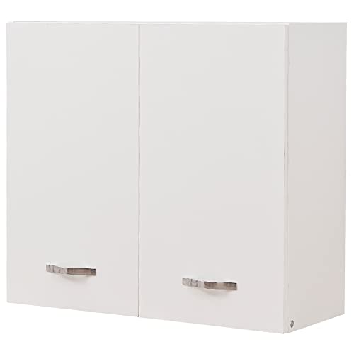 Shally Dogan Väggskåp Diskställ med köksbricka, slitstark träväggskåp, hängande skåp med två dörrar och två hyllor, storlek 80 x 32 x 72 H cm (vit)